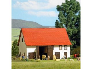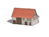 Bausatz eines Kleinbauernhauses aus dem Frankenland mit Fachwerk, Türen und Fensterrahmen aus echtem Holz. Die Tore sind an filigranen Scharnieren aufgehängt und können geöffnet werden. Vorbereitet zum Einbau einer Innenbeleuchtung z.B. Busch LEDs 5998.