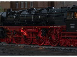 Vorbild: Schnellzug-Dampflokomotive 06 002 der Deutschen Bundesbahn (DB). In originalgetreuer Umsetzung ohne Stromlinienverkleidung, mit Kohlen-Schlepptender 2´3 T38, Zweilicht-Spitzensignal, Witte-Windleitbleche und einseitiger Indusi. Heimatbetriebswerk Hamm. Betriebszustand 1952.