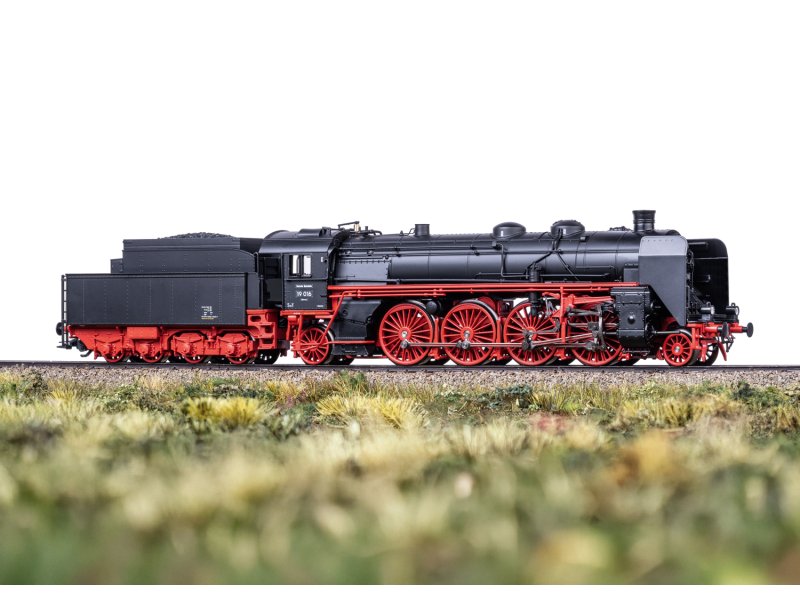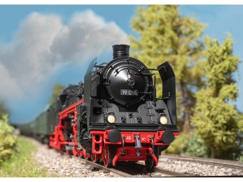Vorbild: Schnellzug-Dampflokomotive Baureihe 19.0 Sachsenstolz (Sächsische Gattung XX HV), mit sächsischem Kohlen-Schlepptender 2´2 T31. Deutsche Reichsbahn der DDR (DR/DDR). Mit großen Windleitblechen. Lok-Betriebsnummer 19 016. Betriebszustand Epoche IIIa, Anfang der 1950er Jahre.