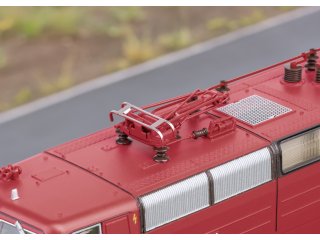 Modell: Mit Digital-Decoder und umfangreichen Geräuschfunktionen. Geregelter Hochleistungsantrieb mit Schwungmasse zentral eingebaut. Alle vier Achsen über Kardan angetrieben. Haftreifen. Fahrtrichtungsabhängig wechselndes Dreilicht-Spitzensignal und zwei rote Schlusslichter konventionell in Betrieb, digital schaltbar. Spitzensignal an Lokseite 2 und 1 jeweils digital separat abschaltbar. Doppel-A-Licht-Funktion. Führerstandsbeleuchtung mit der Fahrtrichtung wechselnd und Maschinenraumbeleuchtung digital schaltbar. Beleuchtung mit wartungsfreien warmweißen und roten Leuchtdioden (LED). Mit Pufferspeicher. Stromabnehmer digital heb- und senkbar. Separat angesetzte Radimitationen, Griffstangen, Scheibenwischer, UIC-Steckdosen und Dachleitungen. Pufferhöhe nach NEM. Bremsleitungen, Schraubenkupplungen und verschiedene Steckdosen liegen als separat ansteckbare Teile bei. Länge über Puffer 20,5 cm.