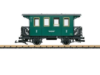 Wir schreiben die 1960 Jahre. Es war die Zeit, als eine moderne Bundesbahn längst in ein neues Zeitalter aufgebrochen war. Aber es gab im schwäbischen Bottwartal noch eine Schmalspurbahn, auf der die DB ihre letzten zweiachsigen Holzkastenwagen aus der Zeit der Königlich Württembergischen Staats-Eisenbahnen im Alltagsbetrieb einsetzte. Sie boten Reisen wie zu Großmutters Zeiten im Blumen-pflücken-erlaubt-Tempo, während gleichzeitig TEE-Züge mit 160 km/h durch die Lande sausten. Damit war 1966 Schluss und die uralten Holzklasse-Oldtimer sollten auf den Schrott wandern. Doch dann wurde 1967 auf der nahegelegenen Jagsttalbahn der längst eingestellte Personenverkehr für die Schülerbeförderung wieder aufgenommen. Die SWEG als Betreiber der Strecke suchte nach kostengünstigen Fahrzeugen und übernahm von der Bundesbahn vier Bottwartalbahn-Wagen als M-D 1, 2, 3 und 4. Die Schülerzüge fuhren bis 1979 und die Jugend erfreute sich immer wieder aufs Neue am besonderen Fahrerlebnis mit Holzbänken und offenen Plattformen. Ab 1971 bildeten die Württemberger auch die Basis für den äußerst erfolgreichen historischen Zugbetrieb auf der landschaftlich so reizvollen und immerhin 39 Kilometer langen Jagsttalbahn. Wagen M-D 3 blieb bis zur Einstellung der Strecke in Betrieb. Aktuell steht er in Dörzbach und wartet auf seine Aufarbeitung. Er ist ein wirkliches Juwel, denn der 1924 in Dienst gestellte Zweiachser ist das letzte vollständig erhaltene Exemplar dieser meistgebauten Bauart württembergischer 750 mm-Schmalspurpersonenwagen. Und das neue LGB-Modell erinnert perfekt (mit der Schlepptenderlok 798.101) an die faszinierende, 125-jährige Geschichte der Jagsttalbahn.