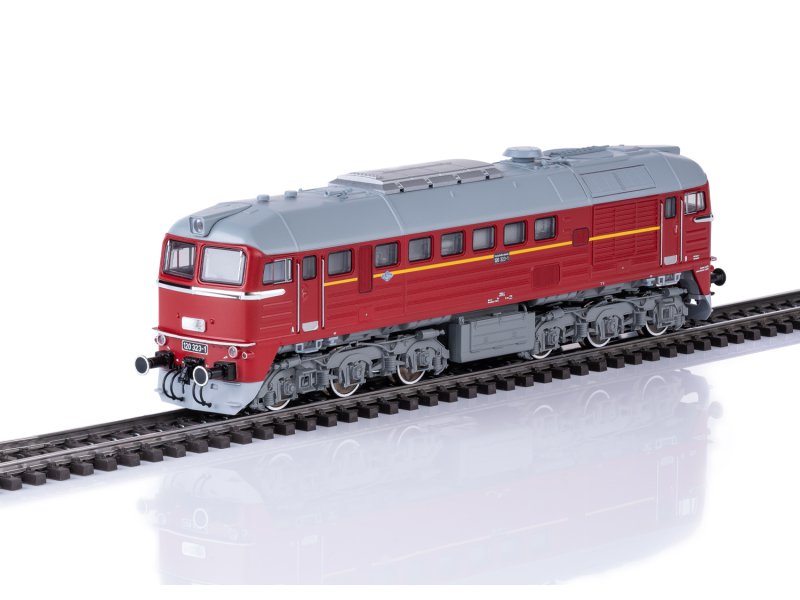 Vorbild: Diesellokomotive BR 120 der Deutschen Reichsbahn (DR), auch bekannt unter dem Spitznamen äTaigatrommel“. Ausführung mit Schalldämpfer sowjetischer Bauart. Betriebszustand 1973. Betriebsnummer 120 323-1.