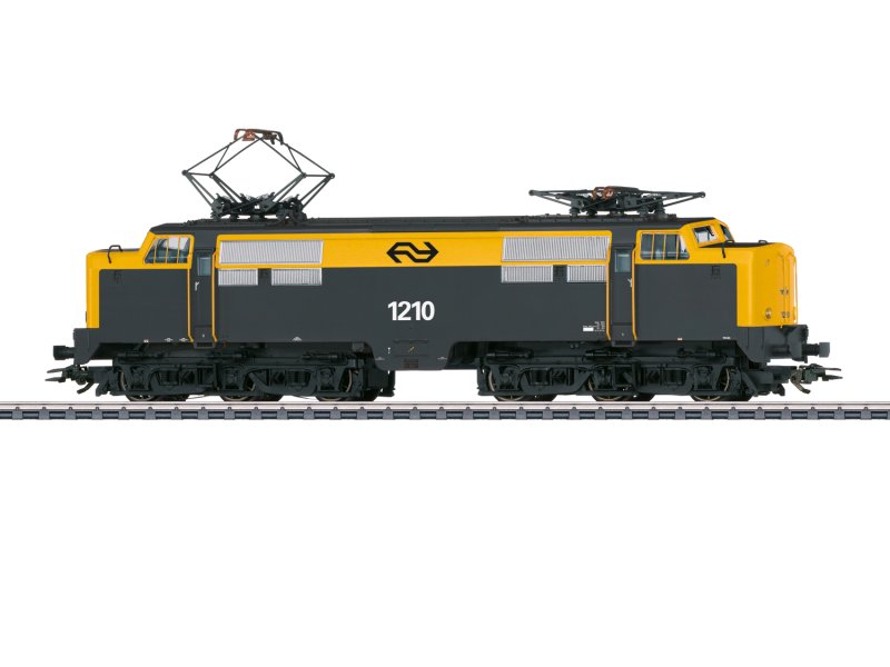 Vorbild: Elektrolokomotive Reihe 1200 der Niederländischen Eisenbahnen (NS). Grau/Gelbe Grundfarbgebung. Betriebsnummer 1210. Betriebszustand ab 1972.