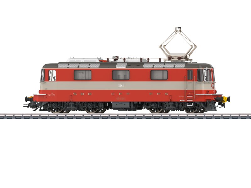 Vorbild: Elektrolokomotive Re 4/4 II, 1. Bauserie der Schweizerischen Bundesbahnen (SBB). Kieselgrau/Blutorange Grundfarbgebung als Zuglokomotive des Swiss Express. Betriebsnummer 11141. Betriebszustand ab 1975.
