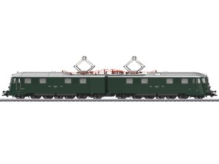 Modell: Mit Digital-Decoder mfx+ und umfangreichen Licht- und Soundfunktionen. In jeder Lokhälfte ein geregelter Hochleistungsantrieb mit Schwungmasse. Jeweils 4 Achsen in jeder Lokhälfte angetrieben. Fahrtrichtungsabhängig wechselndes Dreilicht-Spitzensignal und 1 weißes Schlusslicht konventionell in Betrieb, digital schaltbar. Umschaltbar auf 1 rotes Schlusslicht bei Solofahrt. Doppel-A-Licht-Funktion. Beleuchtung mit wartungsfreien warmweißen und roten Leuchtdioden (LED). Falschfahrtsignal, Führerstandbeleuchtung und Maschinenraumbeleuchtung digital schaltbar. Kulissengeführte Kurzkupplungen an den Enden der Lok, trennbare Kurzkupplung zwischen den Lokhälften. Detaillierte Dachausrüstung mit Dachleitungen, Isolatoren und Dachlaufbrettern sowie Scherenstromabnehmern. Beide Stromabnehmer digital heb- und senkbar. Befahrbarer Mindestradius 360 mm. Die Aussparungen in den Frontschürzen neben dem Normschacht können mit den beiliegenden Füllstücken verschlossen werden. Bremsschläuche und Schraubenkupplungsimitationen liegen bei. Länge über Puffer 39,1 cm.