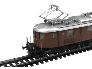 Vorbild: Elektrolokomotive Ae 6/8 der Bern-Lötschberg-Simplon Bahn (BLS). Lokomotive aus der 2. Bauserie. Dunkelbraune Grundfarbgebung mit schwarzem Fahrwerk. Ausführung im ursprünglichen Zustand mit 2 Pantographen und Bremswiderständen im Maschinenraum. Mit stirnseitigen Übergangsblechen und Falschfahrsignal. Signum-Integra Magnet am Lokende II. Längsseitig jeweils mit 4 Maschinenraum-Fenstern und Lamellen-Lüftergittern. Lok-Betriebsnummer 207. Betriebszustand Ende 1940er-/Anfang 1950er-Jahre.
