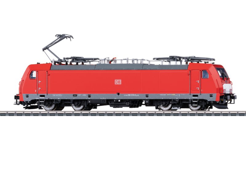 Vorbild: Elektrolokomotive Baureihe 186 der Deutschen Bahn AG. Verkehrsrote Grundfarbgebung. Betriebsnummer 186 339-8. Betriebszustand ab 2019.