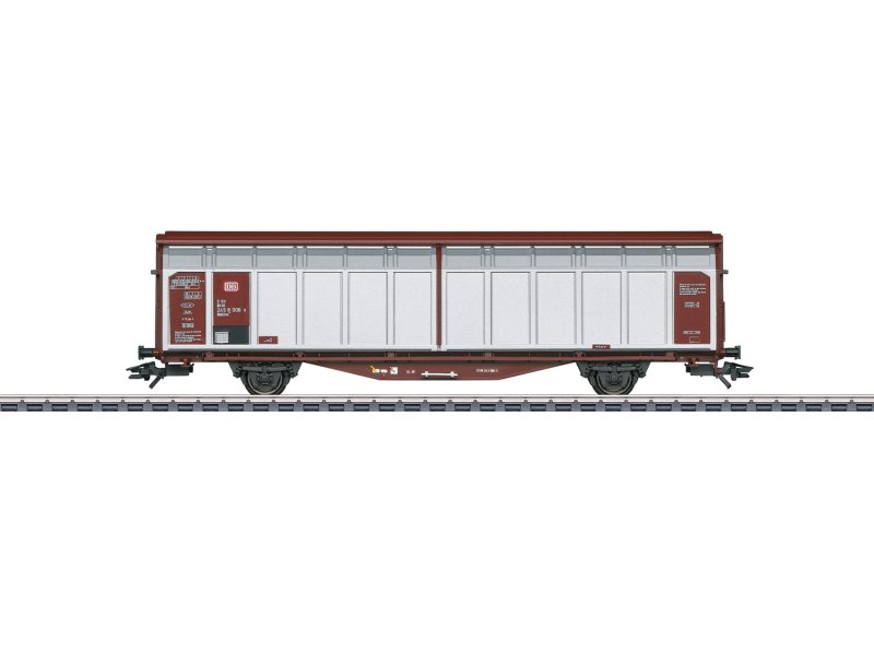 Vorbild: 2-achsiger Großraum-Schiebewandwagen Bauart Hbbillns 305 der Deutschen Bundesbahn (DB). Rotbraune Grundfarbgebung, mit Schiebewänden in Weißaluminium. Betriebszustand um 1989.