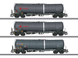 Vorbild: Drei Kesselwagen Bauart Zacns mit einem Fassungsvermögen von 95m3. Zwei Privatwagen der Ermewa SA, ein Privatwagen der Millet SAS. Alle Wagen registriert in Deutschland. Betriebszustand um 2009.