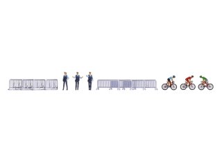 Figuren-Themenwelt äRadrennen, Inhalt: 3 Rennradfahrer, 3 Polizisten, 8 Absperrungen