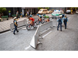 Figuren-Themenwelt äRadrennen, Inhalt: 3 Rennradfahrer, 3 Polizisten, 8 Absperrungen