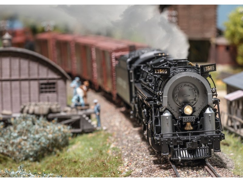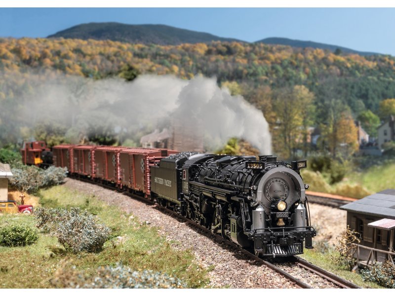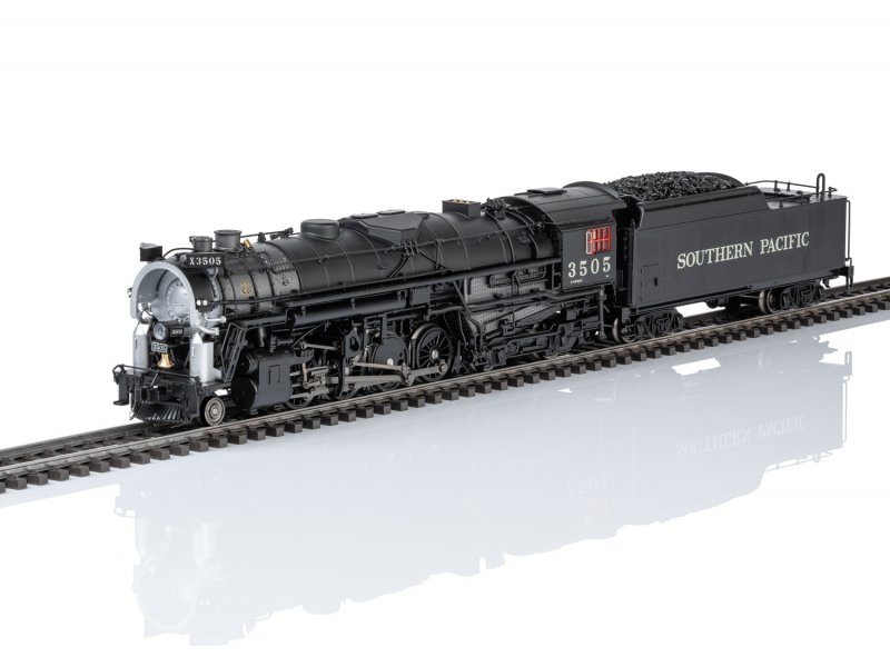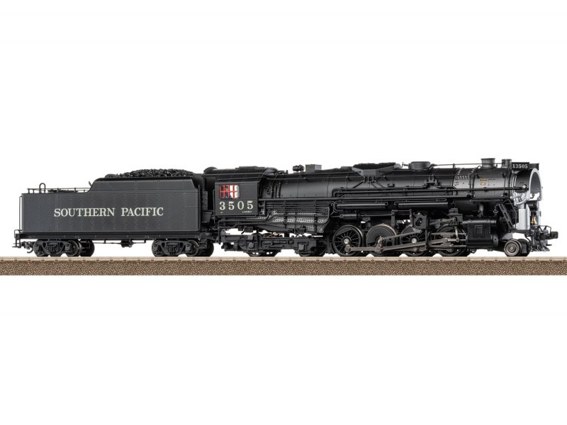 Vorbild: Dampflokomotive mit der Achsfolge 2-8-4 Berkshire der Southern Pacific. Tiefschwarze Grundfarbgebung. Betriebsnummer 3505. Betriebszustand zwischen 1945 und 1950. Eine von 25 gebauten Lokomotiven mit dem markanten Coffin-Vorwärmer.
