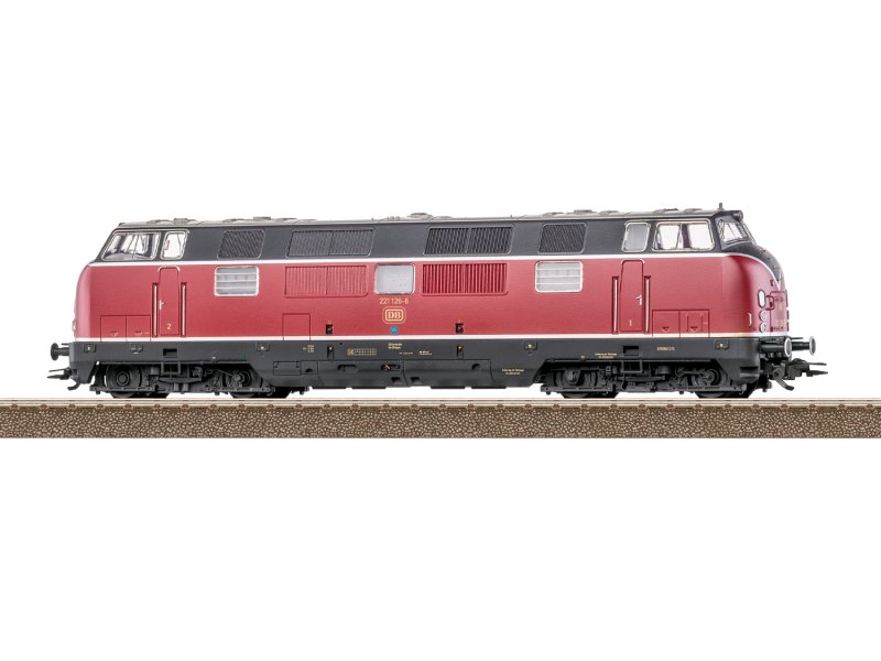 Vorbild: Schwere dieselhydraulische Mehrzwecklokomotive Baureihe 221. Deutsche Bundesbahn (DB). Grundfarbgebung purpurrot. Betriebsnummer 221 126-6. Betriebszustand um 1975.