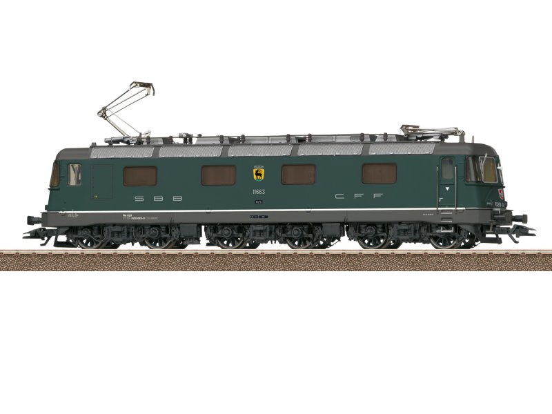 Modell: Mit Digital-Decoder und umfangreichen Geräuschfunktionen. Geregelter Hochleistungsantrieb mit Schwungmasse, zentral eingebaut. 4 Achsen (jeweils beide Achsen in den beiden äußeren Drehgestellen) über Kardan angetrieben. Haftreifen. Fahrtrichtungsabhängig wechselndes Dreilicht-Spitzensignal und 1 weißes Schlusslicht (Schweizer Lichtwechsel) konventionell in Betrieb, digital schaltbar. Spitzensignal an Lokseite 2 und 1 jeweils separat digital abschaltbar. Wenn Spitzensignal an beiden Lokseiten abgeschaltet ist, dann beidseitige Funktion des Doppel-A-Lichts. Beleuchtung umschaltbar auf 2 rote Schlusslichter. Führerstandsbeleuchtung und Maschinenraumbeleuchtung zusätzlich jeweils digital schaltbar. Beleuchtung mit wartungsfreien warmweißen und roten Leuchtdioden (LED). Angesetzte Aufstiegsgriffstangen aus Metall. Kupplungen gegen Frontschürzen austauschbar. Befahrbarer Mindestradius 360 mm. Länge über Puffer 22,2 cm.