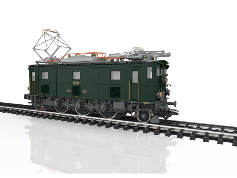 Modell: Mit Digital-Decoder und umfangreichen Licht- und Geräuschfunktionen. Geregelter Hochleistungsantrieb mit Schwungmasse. Eine Achse angetrieben. Haftreifen. Fahrtrichtungsabhängig wechselndes Dreilicht-Spitzensignal und 1 weißes Schlusslicht (Schweizer Lichtwechsel) konventionell in Betrieb, digital schaltbar. Beleuchtung umschaltbar bei Solofahrt auf 1 rotes Schlusslicht. Falschfahrsignal separat digital schaltbar. Spitzensignal an Lokseite 2 und 1 jeweils separat digital abschaltbar. Doppel-A-Licht-Funktion. Zusätzliche Führerstandbeleuchtung, Führerpultbeleuchtung, Blitzen am Schaltwerk und Maschinenraumbeleuchtung jeweils separat digital schaltbar. Beleuchtung mit wartungsfreien warmweißen und roten Leuchtdioden (LED). Mit Pufferspeicher. Hochdetaillierte Metall-Ausführung mit vielen separat angesetzten Einzelheiten. Führerstand- und Maschinenraum-Nachbildung. Detaillierte Dachausrüstung mit Dachleitungen, Isolatoren und Dachlaufbrettern sowie Scherenstromabnehmer. Befahrbarer Mindestradius 360 mm. Bremsschläuche und Schraubenkupplungsimitationen liegen bei.Länge über Puffer ca. 12,8 cm.