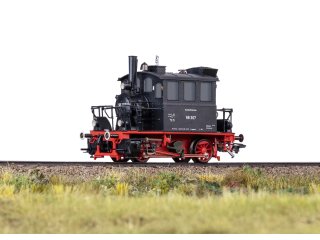 Vorbild: Baureihe 98.3 Glaskasten (ehem. bayerische PtL 2/2) mit Blindwelle und Dreilicht-Spitzensignal und drei Lokalbahnwagen bayerischer Bauart der Deutschen Bundesbahn (DB). Ein Gepäck- und Postwagen und zwei Personenwagen 3. Klasse. Im Betriebszustand der Epoche III um 1957.