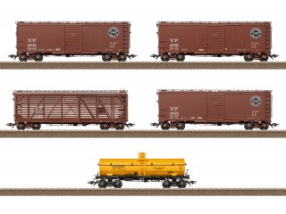 Ein ergänzendes US-Güterwagen-Set mit weiteren fünf Wagen und einen passenden Güterzug-Begleitwagen (Caboose) finden Sie im Märklin H0-Sortiment unter den Artikelnummern 45667 und 45707 mit dem Hinweis auf die benötigten Tauschradsätze. Die passende Dampflokomotive Berkshire finden Sie unter der Artikelnummer 25983.