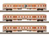 Modell: Befahrbarer Mindestradius 360 mm. Alle Wagen mit serienmäßig eingebauter Innenbeleuchtung mit warmweißen Leuchtdioden (LED). Lange Faltenbälge zum Auswechseln gegen die an den Enden des Wagen-Verbandes montierten kurzen Faltenbälge liegen bei. Gesamtlänge über Puffer 126 cm.