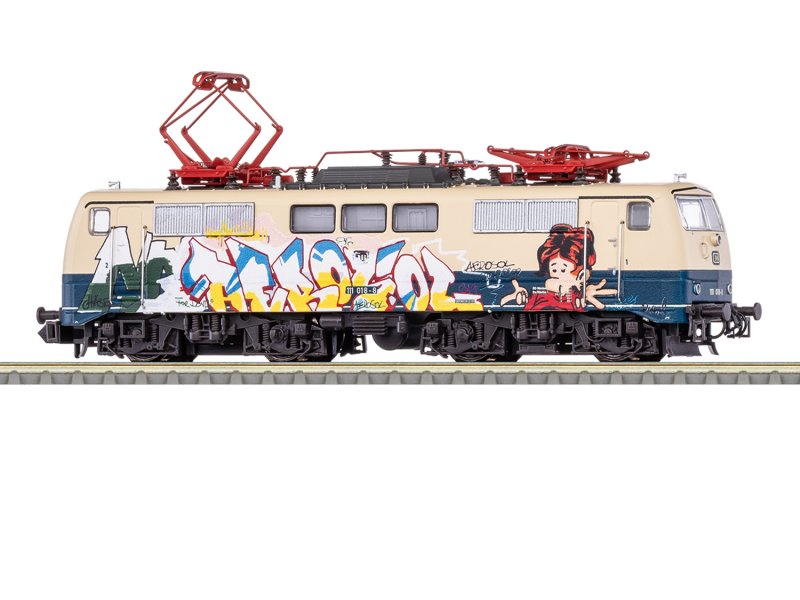 Vorbild: Elektrolokomotive 111 018-0. Achsfolge Bo´Bo´. Baujahr ab 1974. Ausführung mit Zeitgenössischer Kunst.