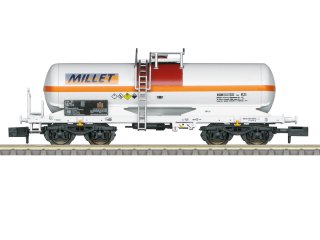 Vorbild: 4-achsiger Chemie-Kesselwagen der Firma Millet. Registriert in den Niederlanden. Aktueller Betriebszustand.