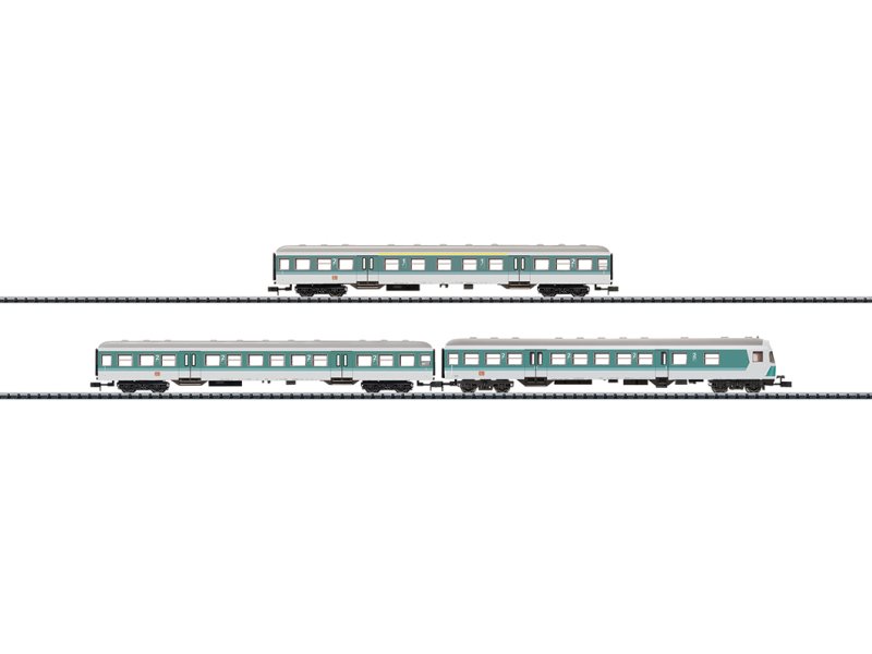 Vorbild: Drei Nahverkehrswagen der Deutschen Bahn AG (DB AG). 1 Wagen BDnrzf, Steuerwagen als Formvariante ohne Gepäckabteil. 1 Wagen ABn, 1. und 2. Klasse. 1 Wagen Bn , 2. Klasse. Einsatz: Regionalexpress mit Zuglauf Kiel-Neumünster-Hamburg.