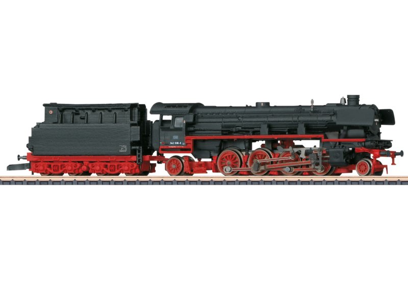 Modell: Fein detaillierte Konstruktion mit Hochleistungskessel (Neubaukessel). Lokaufbau aus Metall mit eingesetzten Führerstandsfenstern und korrekter Detaildarstellung (Kamin, Führerhaus, Lüfter etc.). Nachbildung der Sandfallrohre, Bremsimitationen, Indusi beidseitig, Schienenräumer bzw. weiteren Details am Lokunterteil. Hochdetaillierte, voll funktionsfähige Steuerung und Gestänge. Lokomotive mit Glockenankermotor. Alle 4 Kuppelachsen angetrieben. Spitzenbeleuchtung durch warmweiße LED. Tender mit Speichenrädern ausgerüstet. Länge über Puffer ca. 112 mm. Befahrbarer Mindestradius 195 mm.