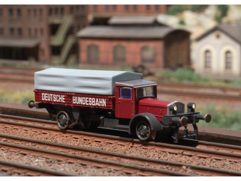 Vorbild: Schienen-LKW 5 to Vomag (Vogtländische Maschinenfabrik AG) der DB (Deutsche Bundesbahn) im Zustand der Epoche III.